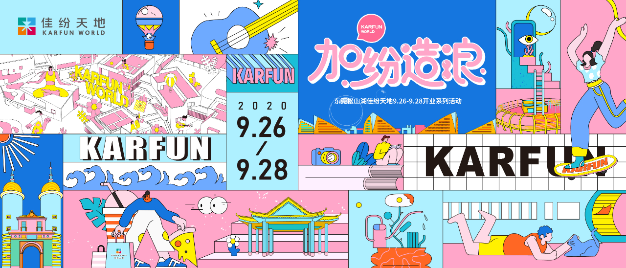 9月26日-28日松山湖佳纷天地全面开业1312全程策划执行开业系列主题活动松山湖青年潮玩新地标!创意打卡 灵感造浪三天三夜 狂欢派对 【新声造浪】歌手大赛、热血街舞SHOW、尖叫电音轰趴夜《创造营2020》人气偶像林君怡亲临现场!青春路上 狂嗨不止青年理想市集30余位文创、潮流市集摊主活力当道,创造自己的生活浪潮