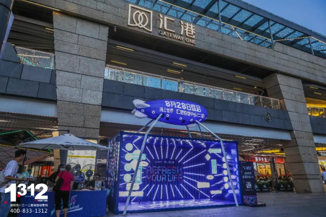 7月下旬起,1312定制打造神秘“空投”现身海上世界,为汇港二期开业进行巡展拓客。