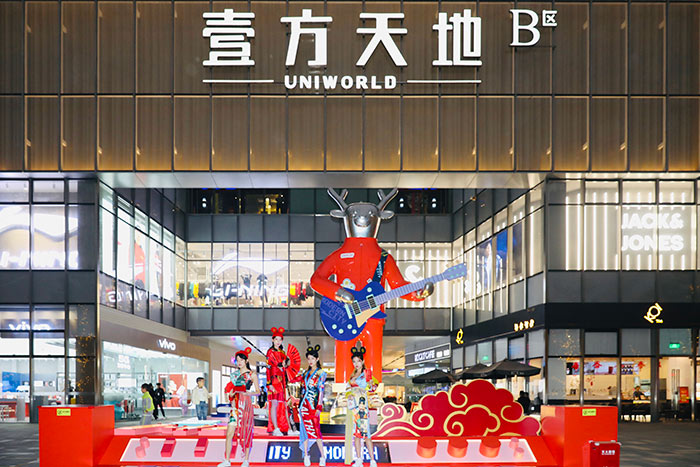 伴随着壹方天地摩登冲锋号的吹响,一群摩登青年手持折扇,头顶专“鼠"标志,带领大家奔赴一个天马行空、玩乐不设限的跨年狂欢之中。