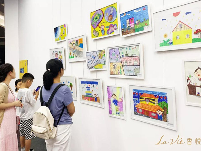 小悦生活的N种想象#绘画艺术展,34位天马行空的小朋友以“小悦”为创作主题,画下了他们心中的小悦生活,现场吸引众多家长和小朋友驻足参观。