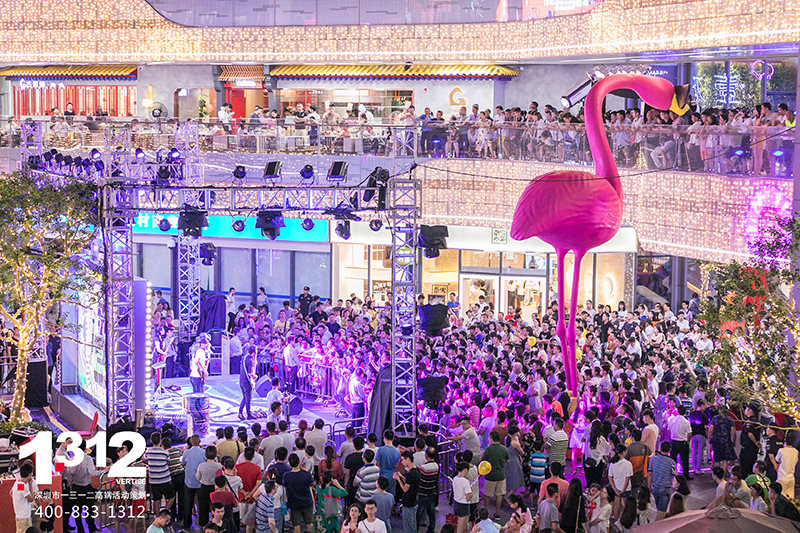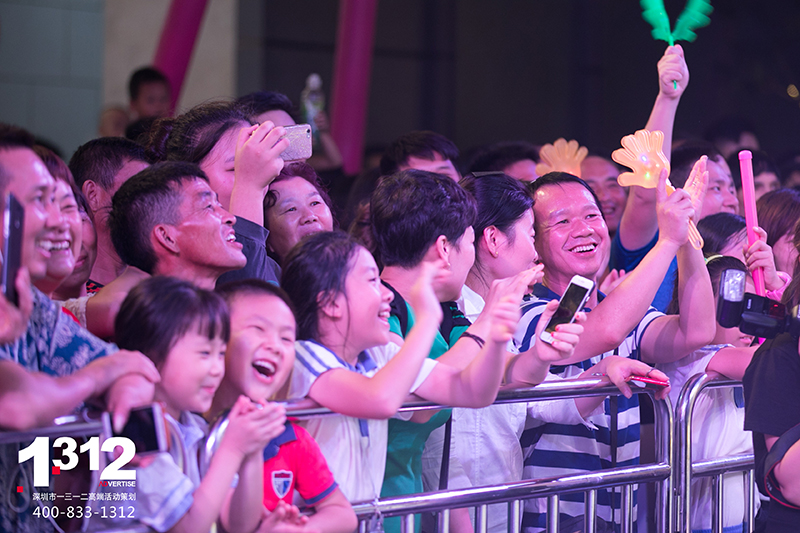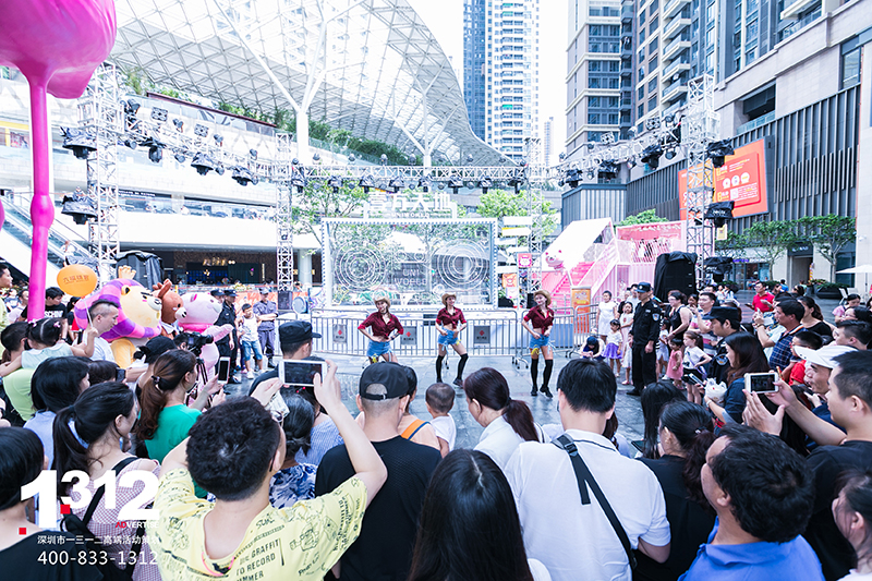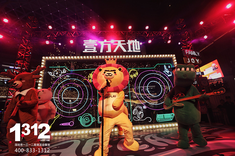 壹方天地A区开业季活动期间1312为壹方天地A区倾情打造了4场主题派对、48场节目演绎。集结百位国际艺人、国内知名儿童剧剧团、网红主播团、深圳本土原创歌手、人气街舞团队等进行全天候演出。活动期间壹方天地A区人气爆棚,刷屏朋友圈,成为深圳新晋网红MALL!